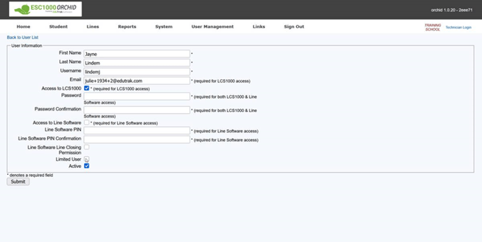 Step 4: If creating a new user, select "Create New User" under User Management and fill out all required fields, and check the Limited User checkbox.