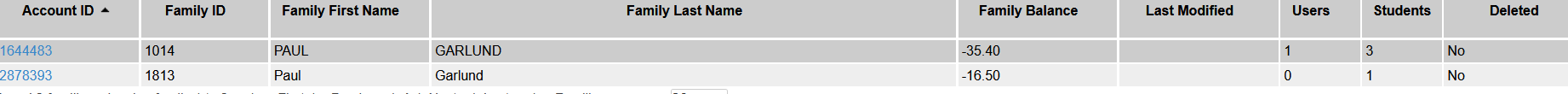 Let's look at another example. In this example, there are two family accounts, both with a balance and both have students: