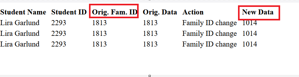 Because the family with Family ID 1812 has no money associated with it, I would want to keep this family and move the one student in this family to the family with Family ID 1015.
