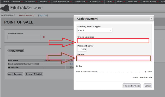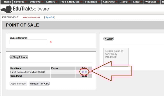 Next, click on the “Lunch Balance for Family” box, as seen here: