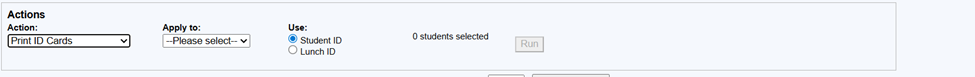Pull up the students you wish to create IDs. Filter by grade or school or both.